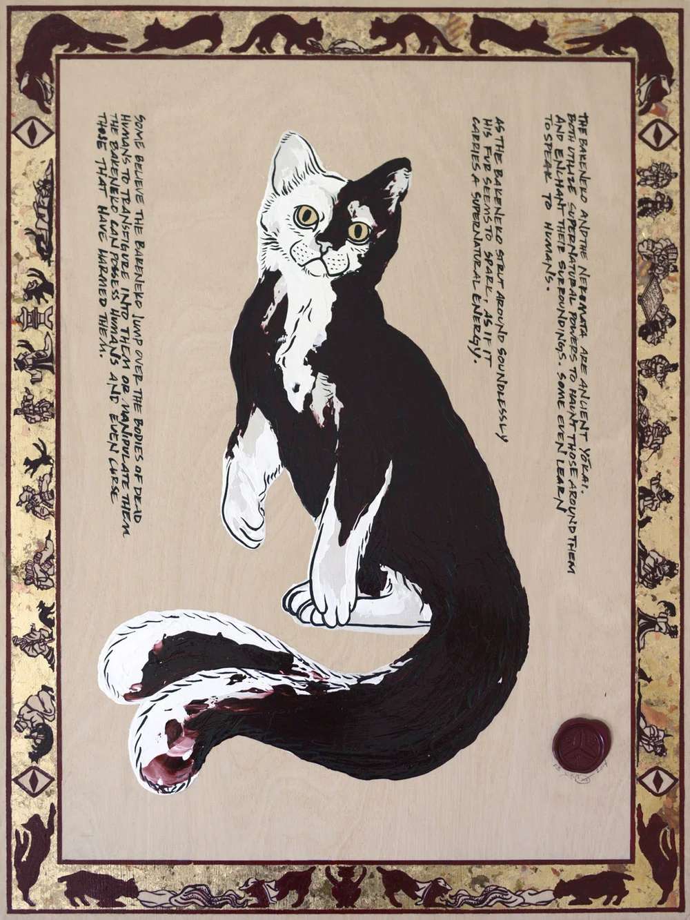 C'est un chat dont la queue s'est divisée en deux et qui a obtenu des pouvoirs surnaturels, comme produire des boules de feu et changer d'apparence, comme le Renard et le Tanuki.